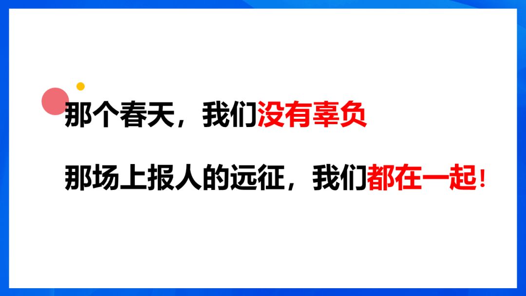 愿十年后再回来,每个上报东说念主都不错骄傲地说:阿谁春天,咱们莫得亏负;那场上报东说念主的远征,咱们都在一说念!